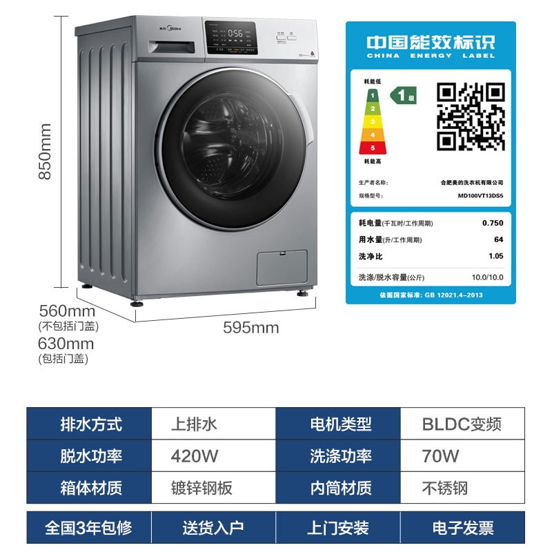 Perfect roller washing machine 10 kg fully automatic with dryer All frequency conversion home MD100VT13DS5
