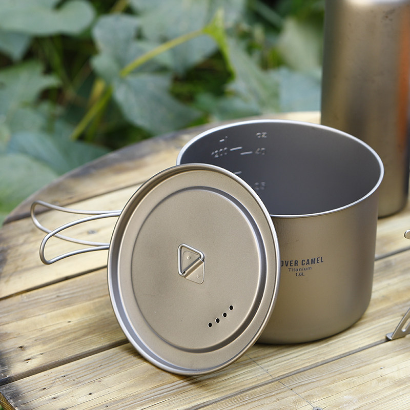 Range Rover outdoor pure titanium pot hanging single pot set pot Instant noodle pot Picnic pot 1 6L lunch box portable cooking camping cookware