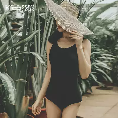 South Korea's new ins wind deep V halter one-piece swimsuit women's small breasts gathered sexy belly cover thin hot spring vacation
