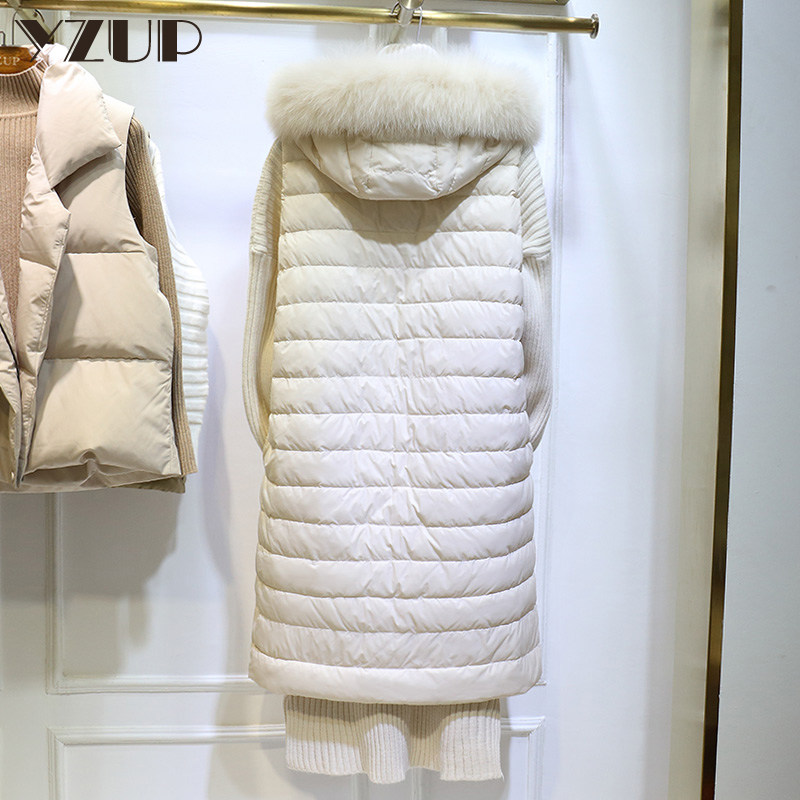 Down waistcoat for women Nets 2021 autumn Winter new Korean version light and thin down jacket with big fur collar and hat waistcoat
