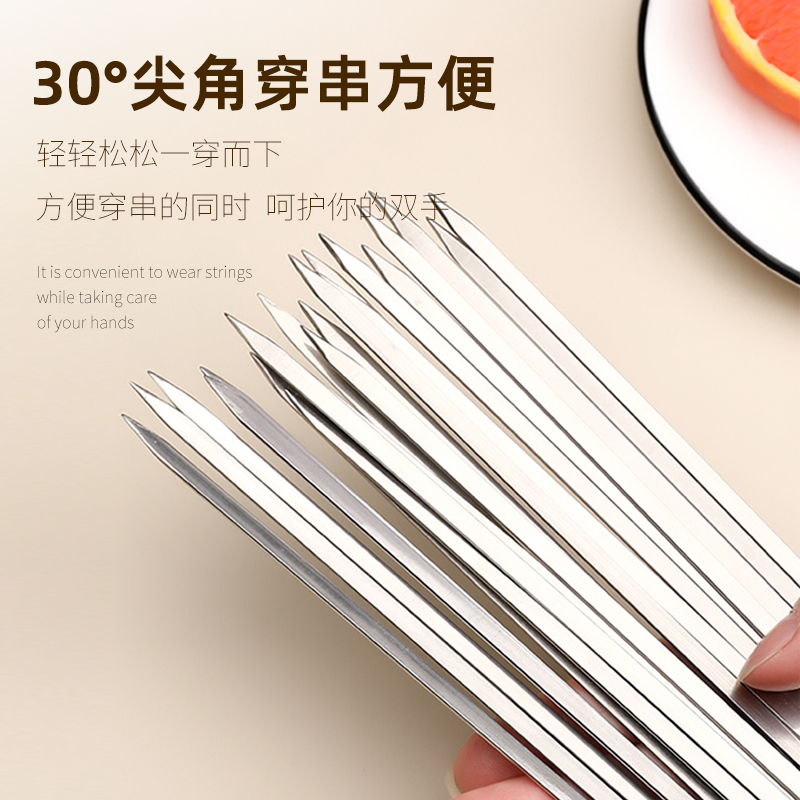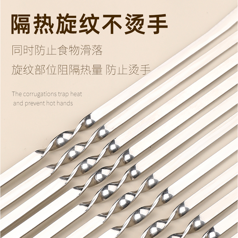 Taffman BBQ Skewer 304 Stainless Steel Lamb Kebab Grilled Meat Skewer Iron Brazed Brazed Flat Signature Needle Skewer Commercial