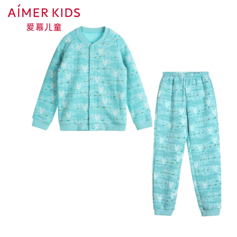 AIMER Children Fun Rabbit boy girl clip cotton thickened warm home pyjamas pants set AK2430191