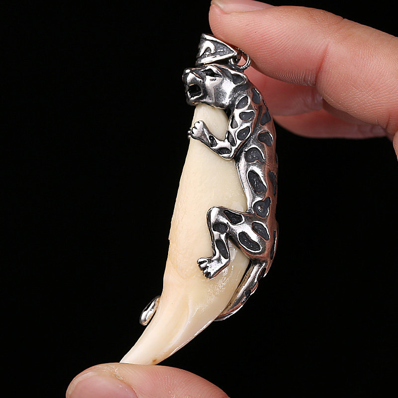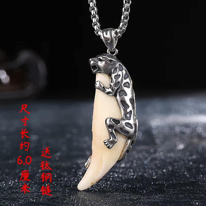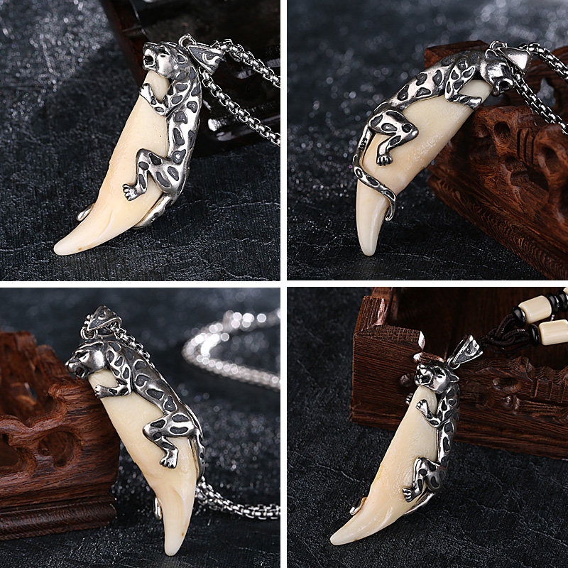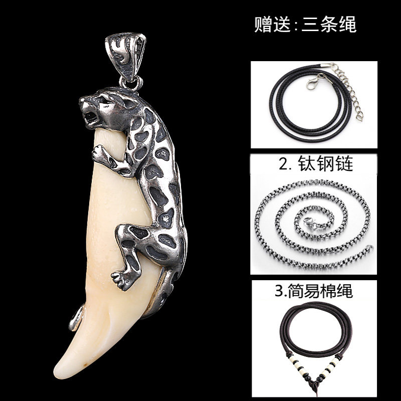 Necklace Men Pendant Carry-on Wolverine Pendant Personality Pack Real Black Dog Tooth Titanium Steel Chain 925 Pure Silver Ornament
