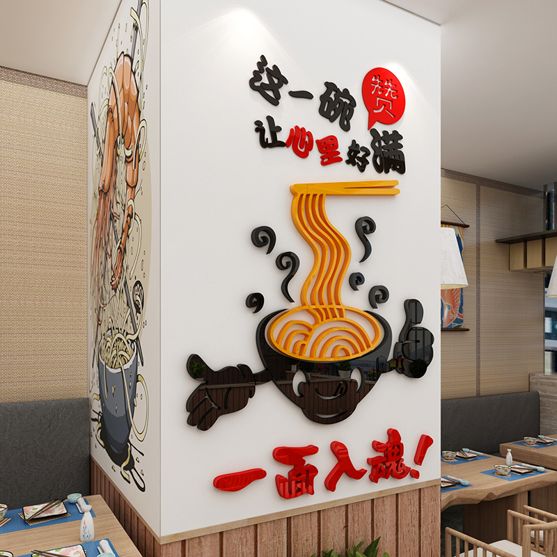 One side into the soul creative personality noodle shop decoration Japanese cuisine pasta funny shop stickers dining room wall decoration