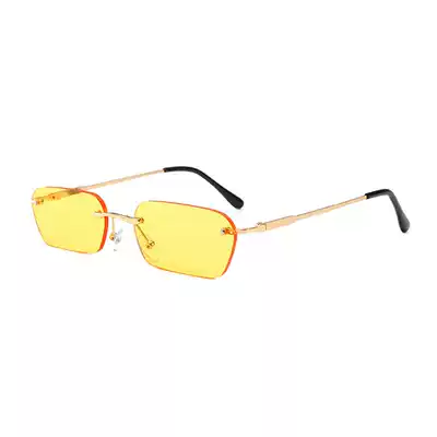 Rimless Sunglasses Tide Brand Men's Fashion Transparent Yellow Sunglasses Female Personality Hip-hop Street Shots Big Face Glasses