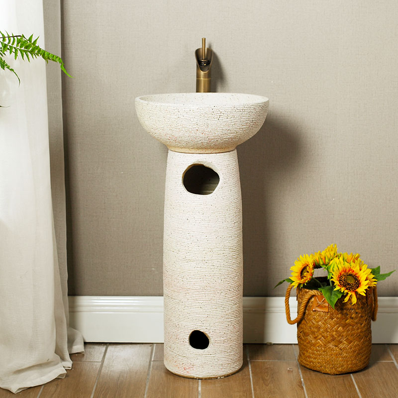 Vertical washbasin stand column washbasin one basin home balcony powder room ceramic column basin floor-standing