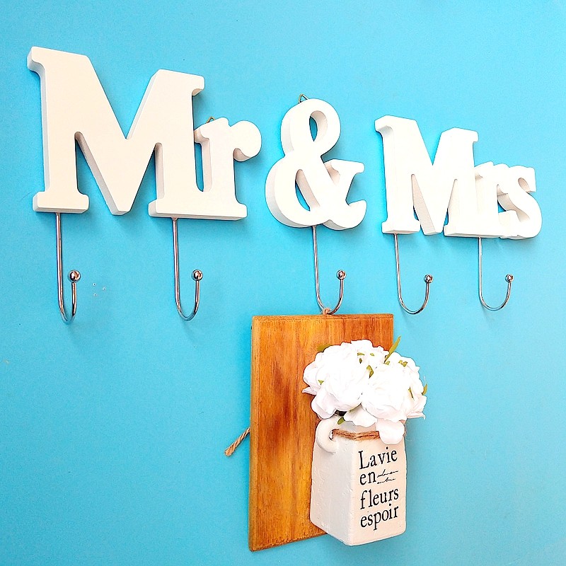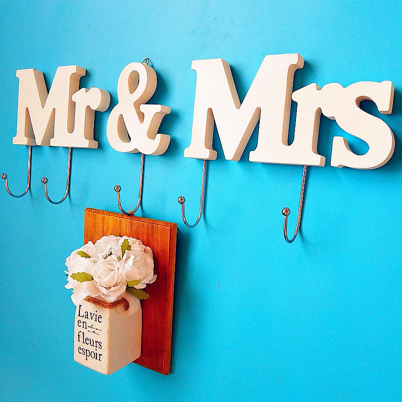 Mr and Mrs European style coat rack key hook creative wooden hanger room decoration wall hanging wall decoration