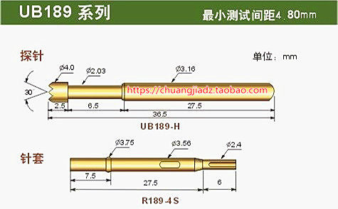Probe UB189-D round head 3 16mm test needle section 4 0 spring thimble gilded thimble fit 3 6 pin sleeve