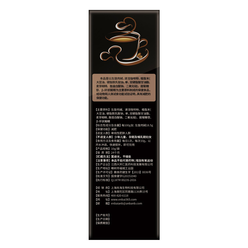 Levo-carnitine instant coffee powder plant fat weekend (soybean oil stearyl lactic acid sodium mono-double stearic acid glycerides malt burnt essence sodium silica) stevia glycosides beta-ring burnt essence
