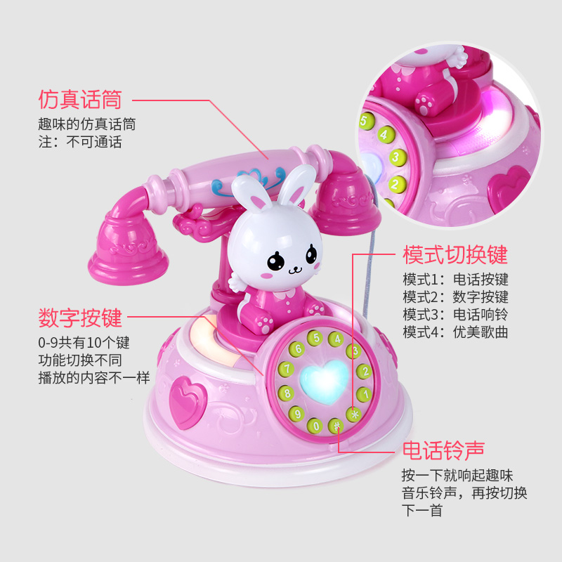 Child Retro Cartoon Phone Early Education Storytelling Machine Multiple Modes Simulation Telephone Girls Dress Up Family Wine Toys