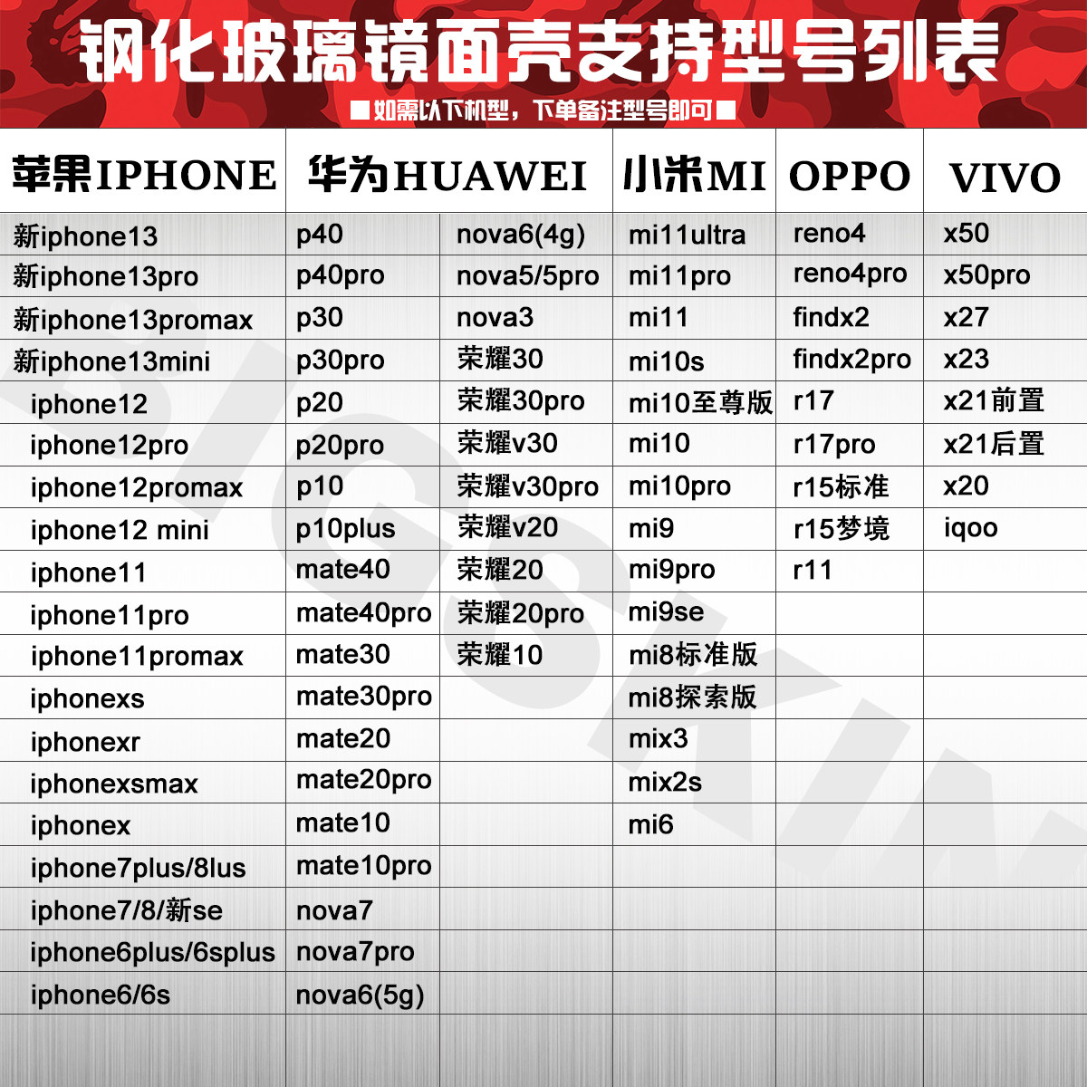 Applicable mobile phone models:
