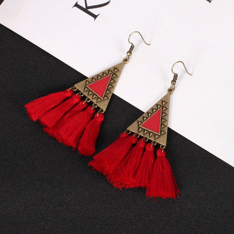 Bohemian earrings female retro ethnic style red tassel earrings Yunnan Dali Lijiang travel outing wear
