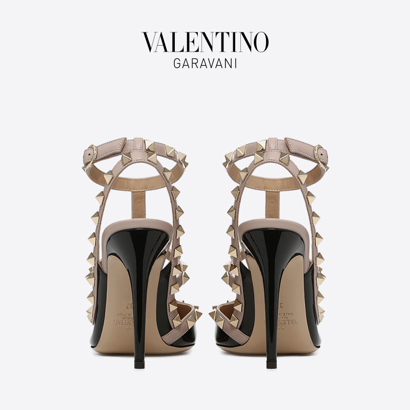 VALENTINO VAN RENTINO Ms. ROCKSTUD lacquered leather rivets high heel shoes (heel high 10 cm)