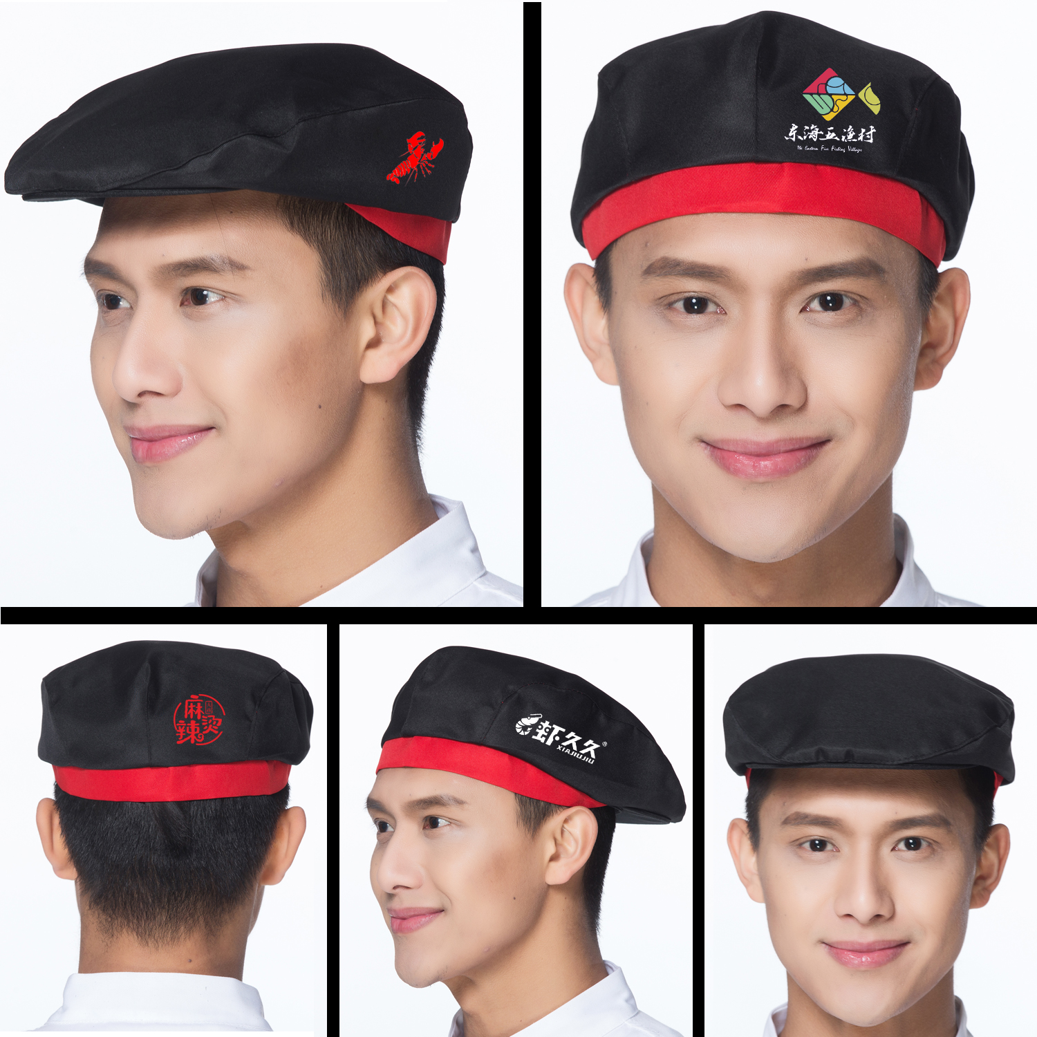 Chef Hat Men's Fabric Peaked Cap Hotel Restaurant Uniform Hat Women's Kitchen Fashion Dining Beret Black