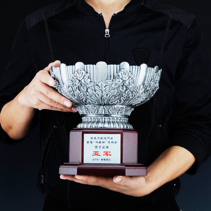 Metal Trophy Basketball Soccer Team Champion Golf Tournament Grand Prix Mahogany Base Event Awards Souvenir