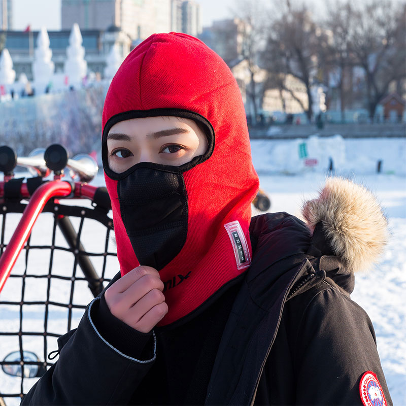 Rabbit suede knit double layer suede cold and warm headgear soft and comfortable outdoor riding protective face headgear hat