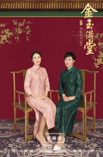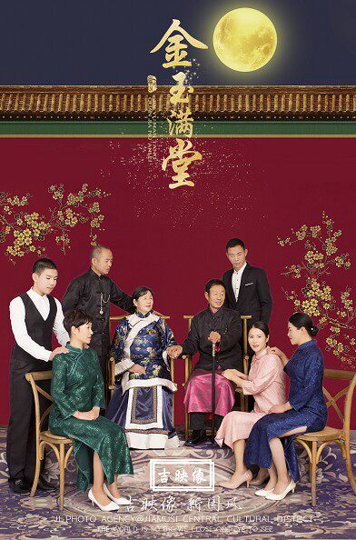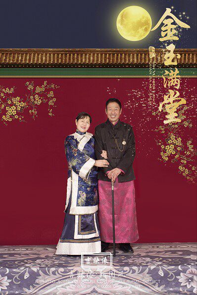 Whole Family Fu Ancient Clothing background Republic of China Full family fu qipao photo-screen cloth retro full family fortune photography gold jade full hall-Taobao