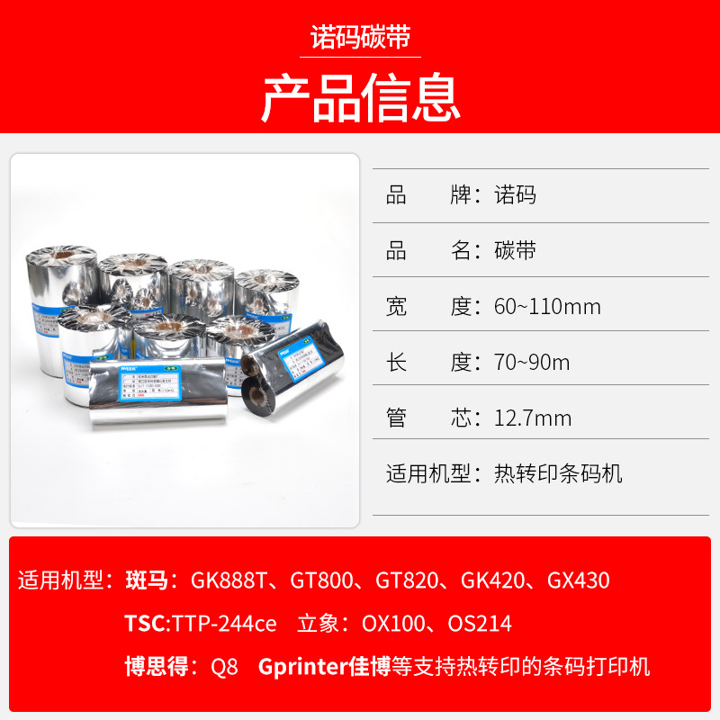 Washed Mark Ribbon 30 35 40*200M Blank Washed Label Ribbon Waterproof Thermal Transfer Printer Barcode Dual Axis 110mm*70m 90m Wax-based Ribbon Roll Mixed Resin Base