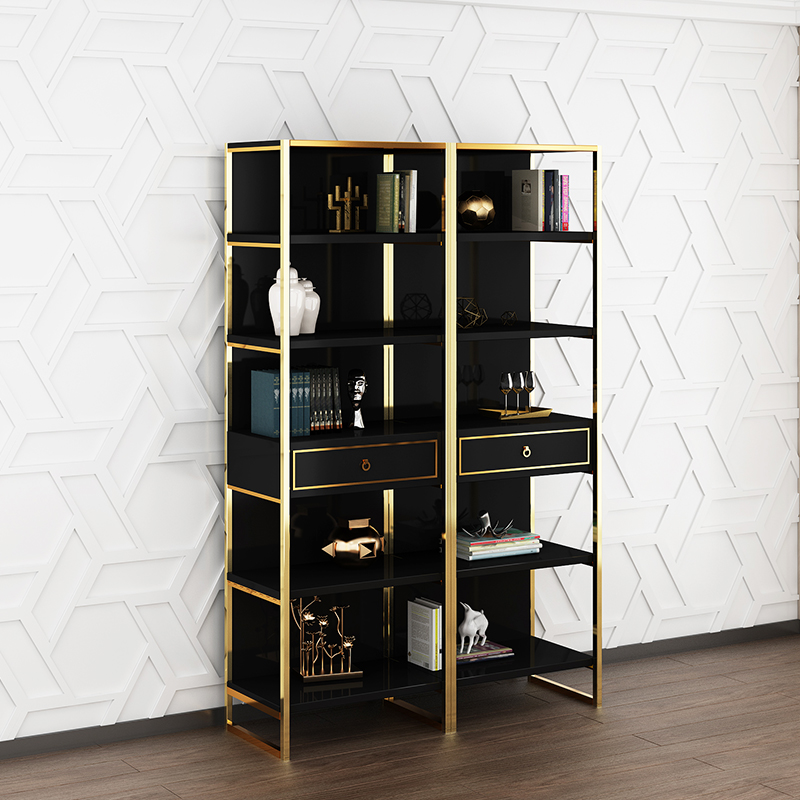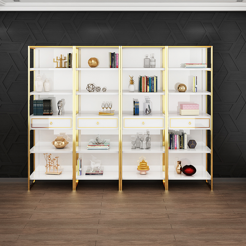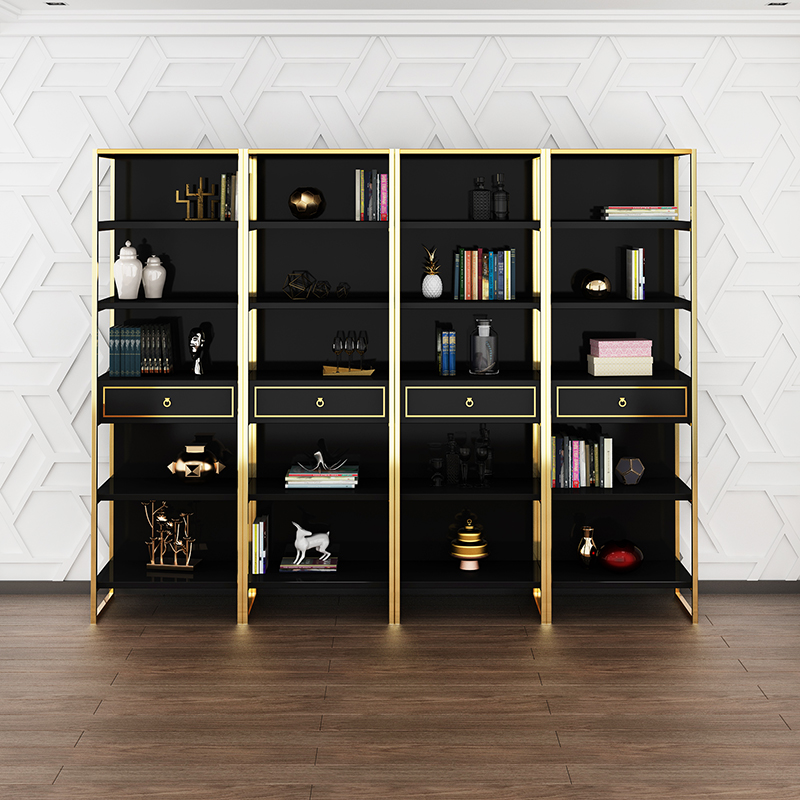 Li Ke light luxury Hong Kong-style bookcase home bookshelf office file cabinet gold-plated stainless steel floor-to-ceiling bookshelf multi-layer storage