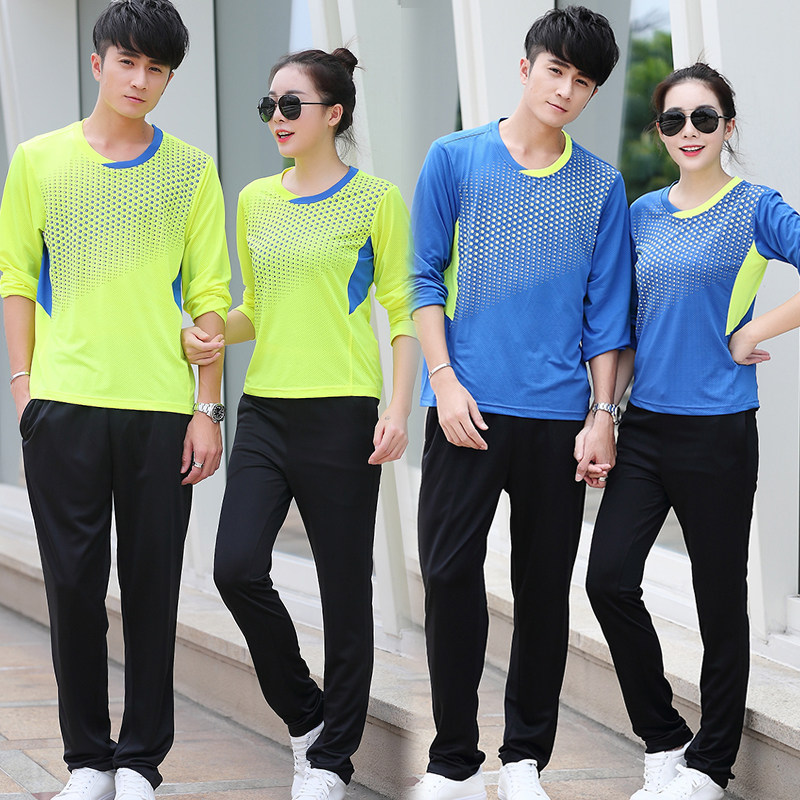 Autumn and winter badminton clothing long-sleeved trousers sports suit men and women quick-drying air exhaust net tennis jersey training team uniform