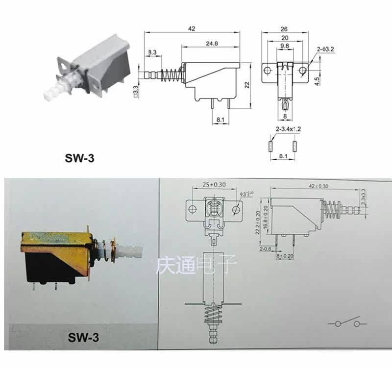 SW-3 self-locking lock-free inner spring with bracket power supply device direct key switch power switch hole 20 25MM