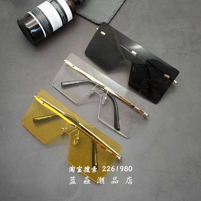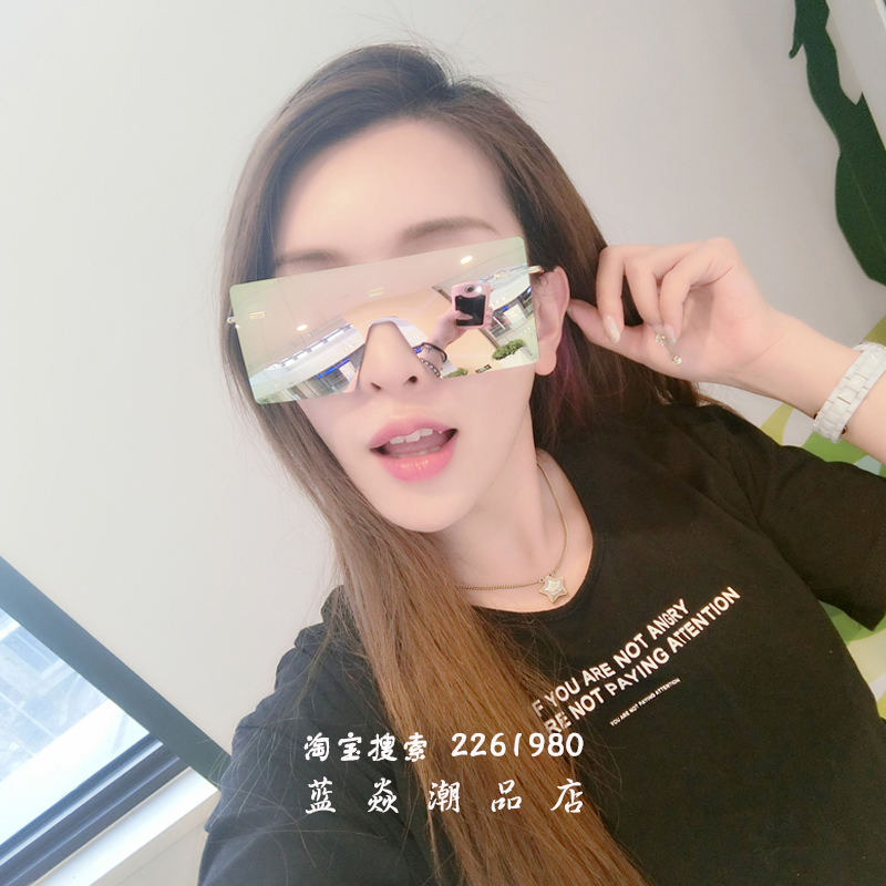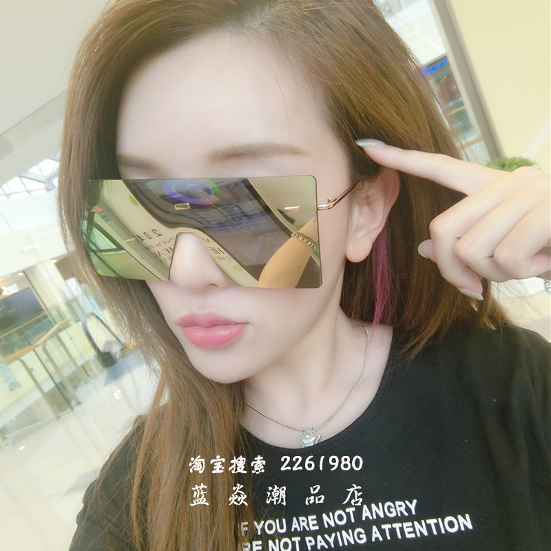 Net red one-piece unframed sunglasses female Korean version round face big frame sunglasses men's wave personality stars driving special glasses