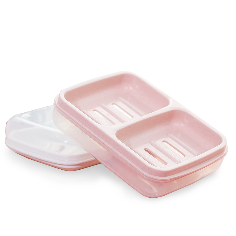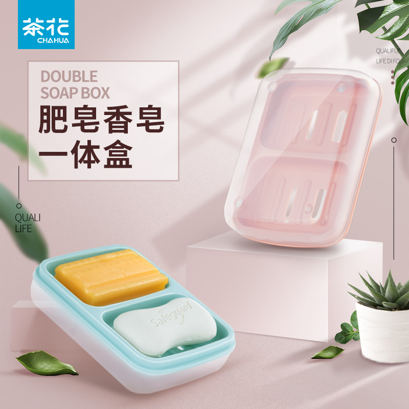 Camellia double grid soap box soap box dormitory household with lid double laundry soap box drain box