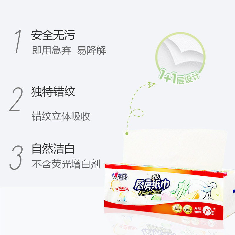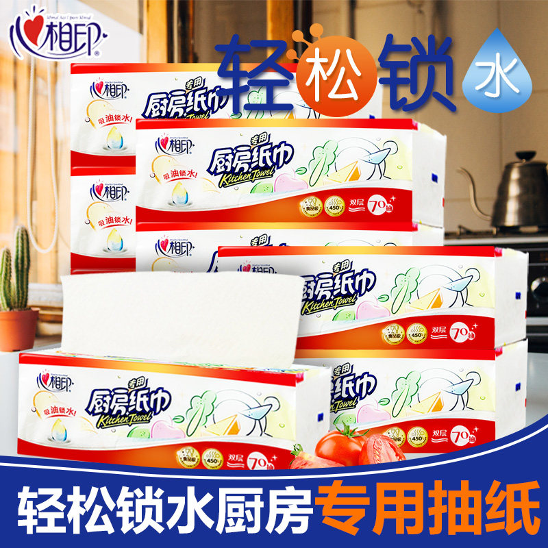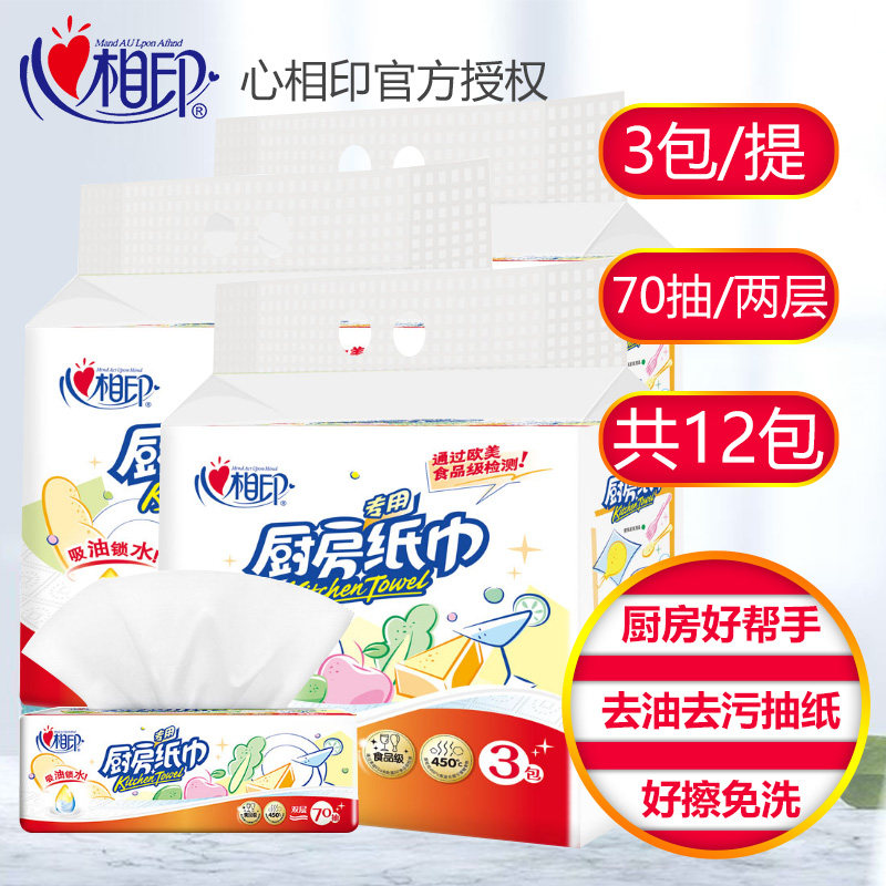 Heart print household kitchen paper towel Oil-absorbing water-absorbing special removable paper towel 2 layers 70 pumping 12 packs of boxes