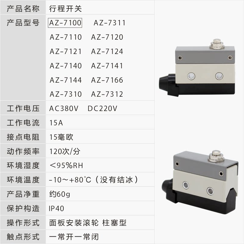 Travel switch AZ-7100 micro switch limit switch direct-acting self-reset silver contact normally open and normally closed