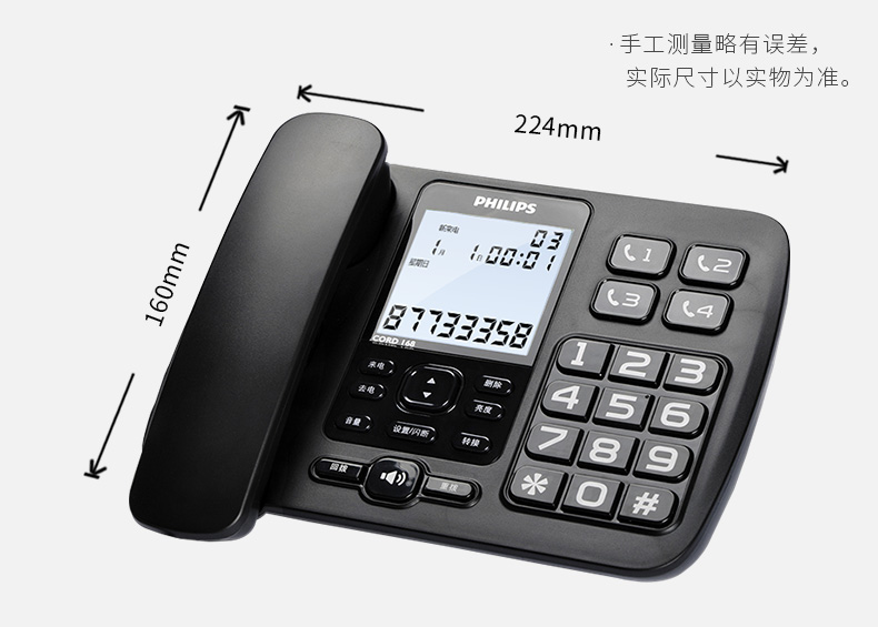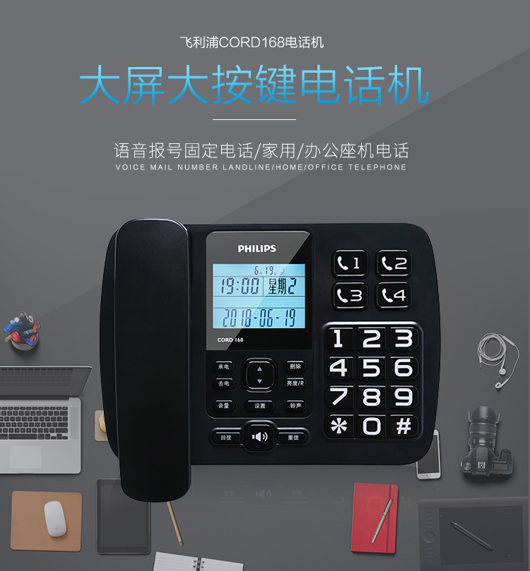Philips CORD168 phone big screen big press key to electric display number office home telephone landline machine