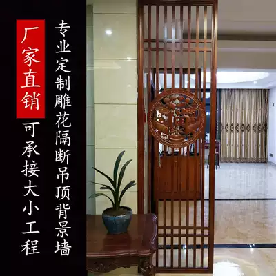 Carved partition entrance living room ceiling modern Chinese background wall hollow lattice density pass flower board decorative screen