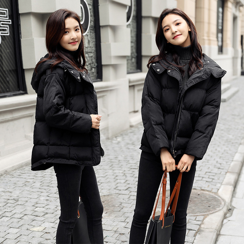 Hong Kong 2019 Winter new body cotton clothes woman short cotton padded jacket with slim down cotton jacket black down jacket