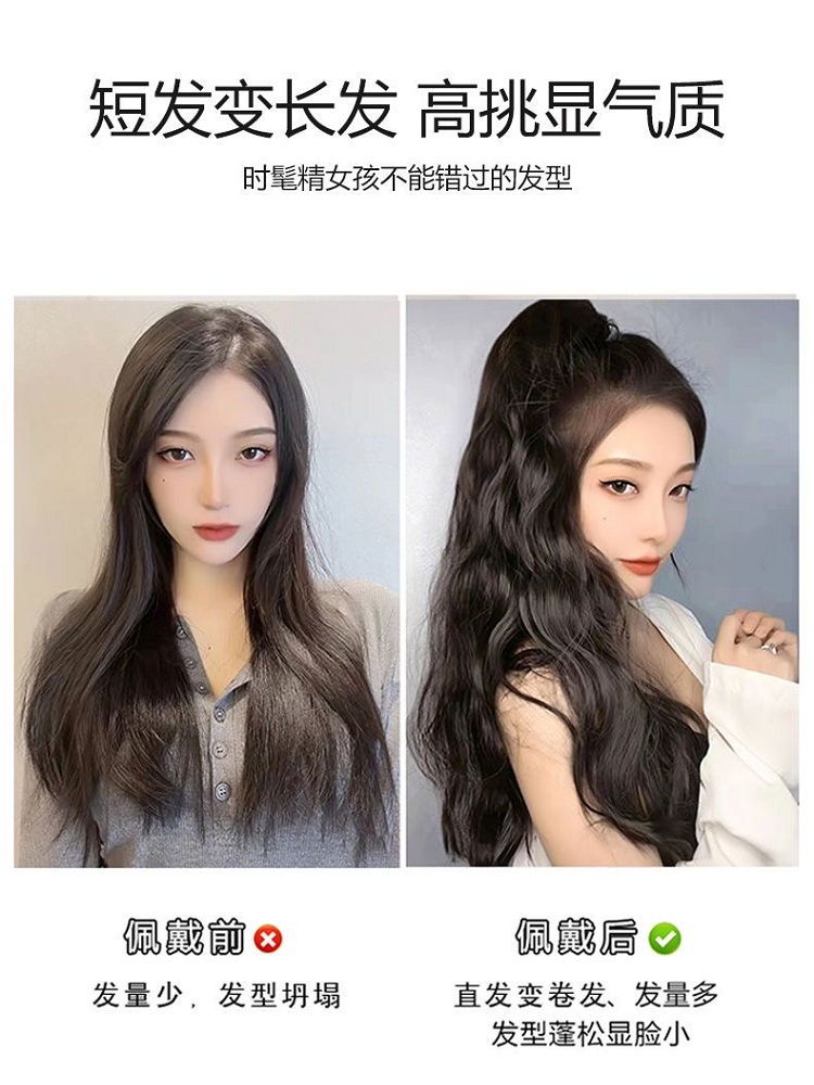 Real hair wig female braid water ripple curly hair big wave natural real hair silk wool curl clip type high ponytail