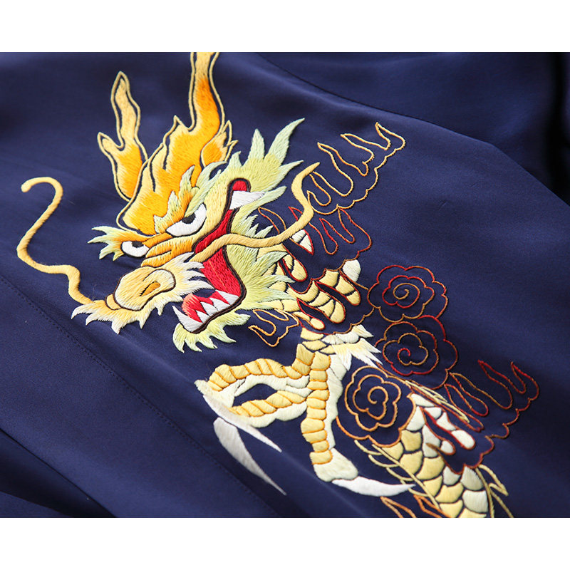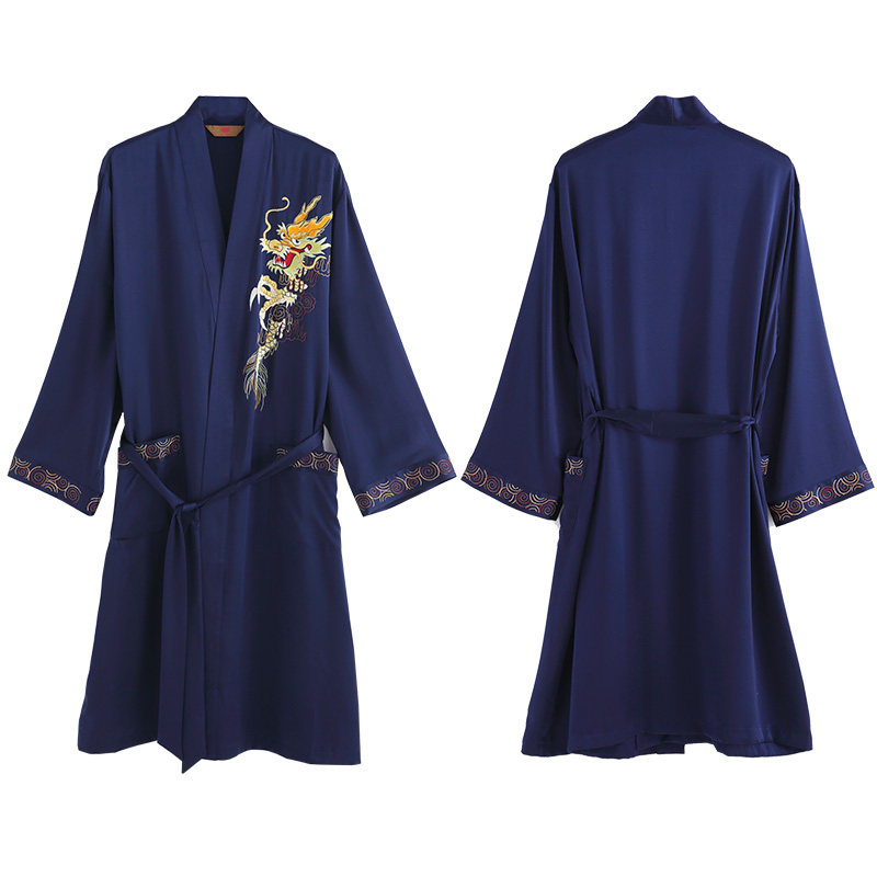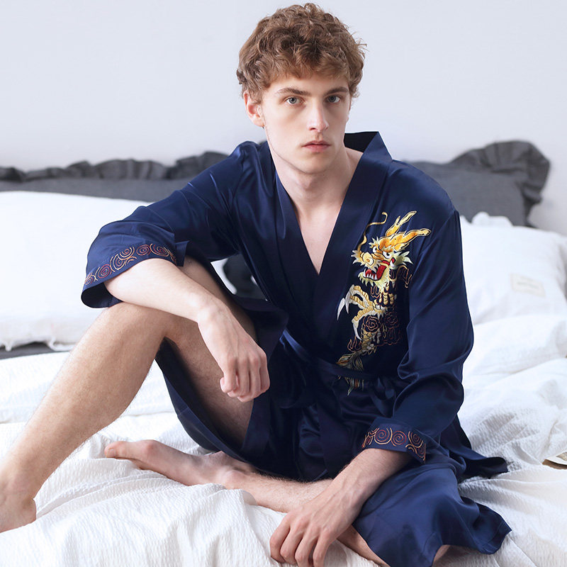 Dalli autumn winter pyjamas with male long sleeve suit mulberry silk embroidered blue printed casual home gown bathrobe