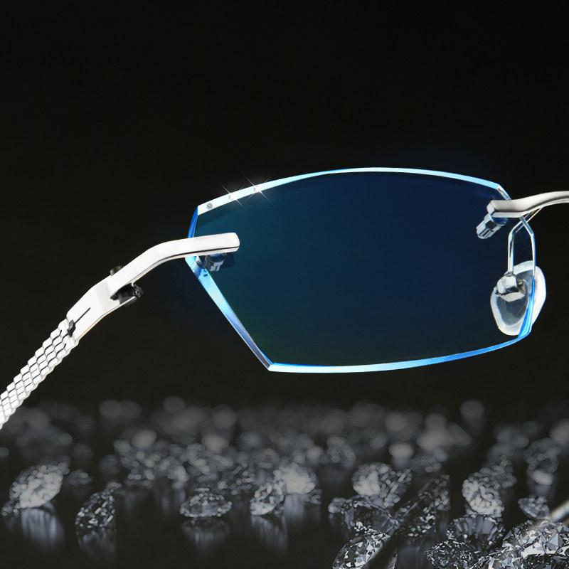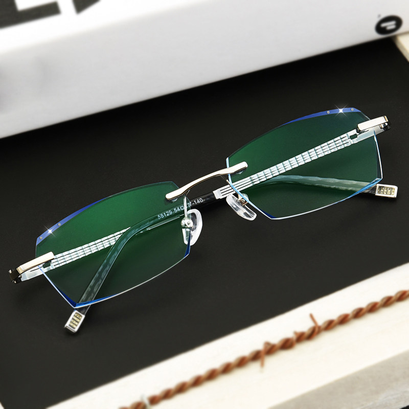 Matching diamond cut edge No frame Glasses Male Nearsightedness Spectacle Frame Ultralight Business Eye Frame Large Face Flat Light Discoloration Glasses-Taobao