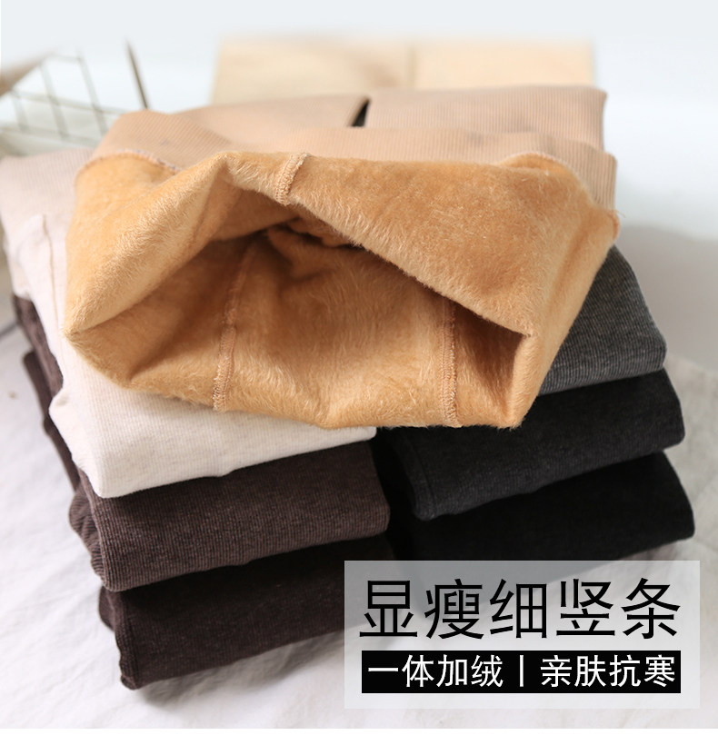 Autumn Winter Day Series Fine Vertical Stripe Display Slim Inner Lap Pants Socks Plus Suede Pure Cotton Thick And Warm Integrated Coffee Thin Suede Pants Socks