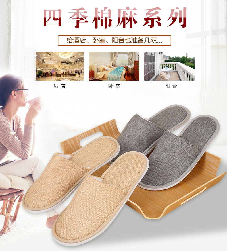 Star Hotel Guest House Guest Rooms Hospitality Upscale Printed Pure Colour Linen Cotton Linen Cloth Slippers Customizable Logo
