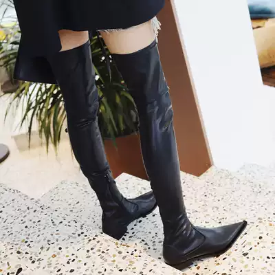 ALEX SARA pointed flat end fashion patent leather knee stretch boots new flat heel Boots Boots women