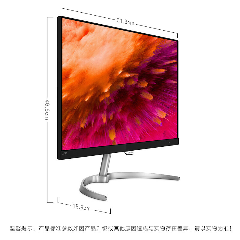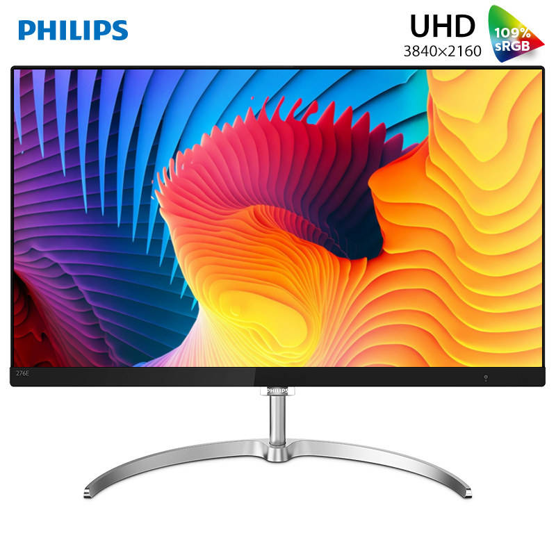 Philips 276E8VJSB 27 Inch 4K Ultra Clear Display IPS Three Sides Microedge Design Drawing Film Clip 10 700 million color filter Blu-ray games No flashscreen PBP multi-source same screen
