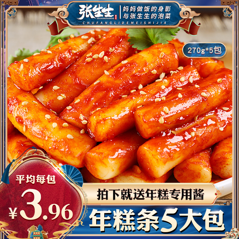 Zhang Shengsheng fried rice cake strips Korean flavor spicy rice cake rice noodles troop hot pot rice cake containing sauce 270g * 5 bags