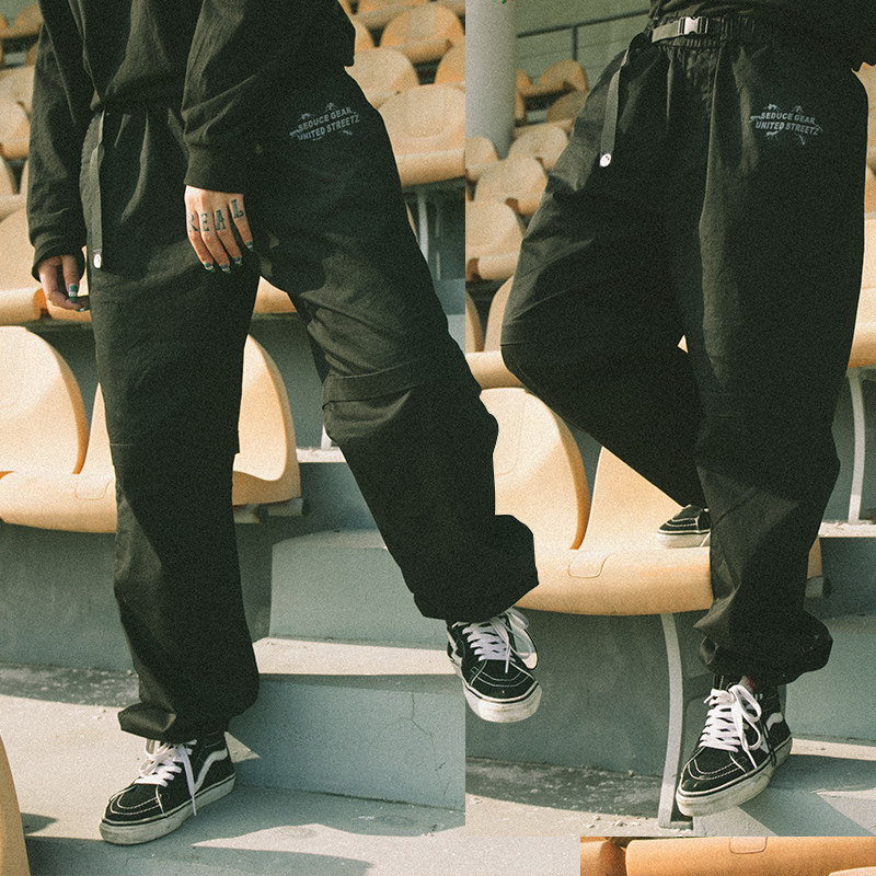 Food Fishing work pants Men's bunches Tide Cards Draw Rope Loose Pants Casual Straight Drum Tide 100 hitch Summer White