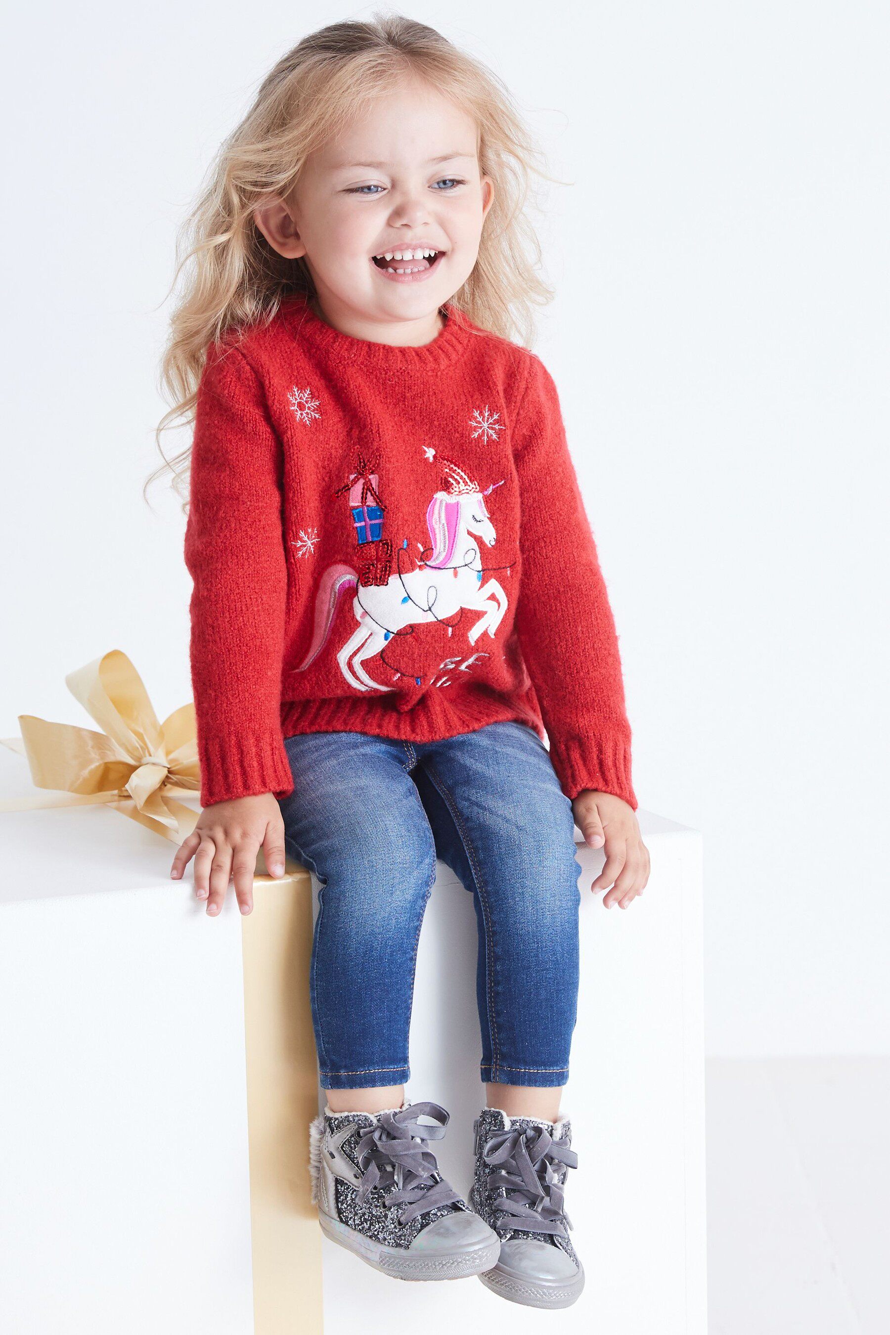 (Spot) Johan Britain's next girl baby unicorn Little Bear Stars Elk Deer Christmas Sweater Dress
