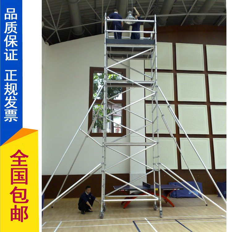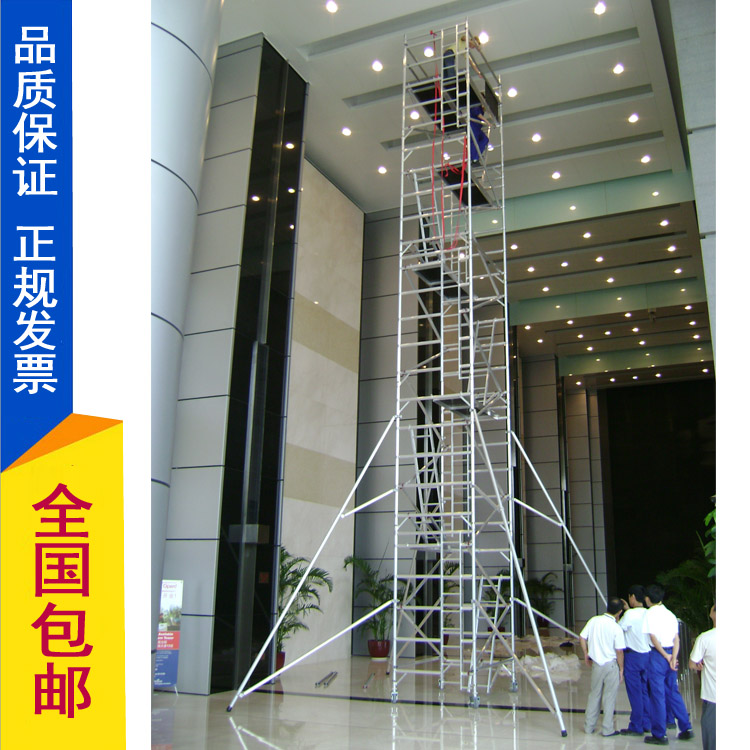 Single and double wide aluminum alloy scaffolding straight climbing ladder thickened aluminum products fast-loading welding frame decoration engineering mobile ladder