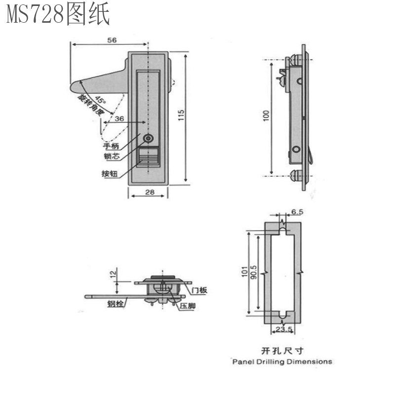 MS728-1 Plane Lock Internet Distribution Box Door Lock Square Lock Button Test Bounce Lock 2 Industrial Host Shell Enclosure Lock