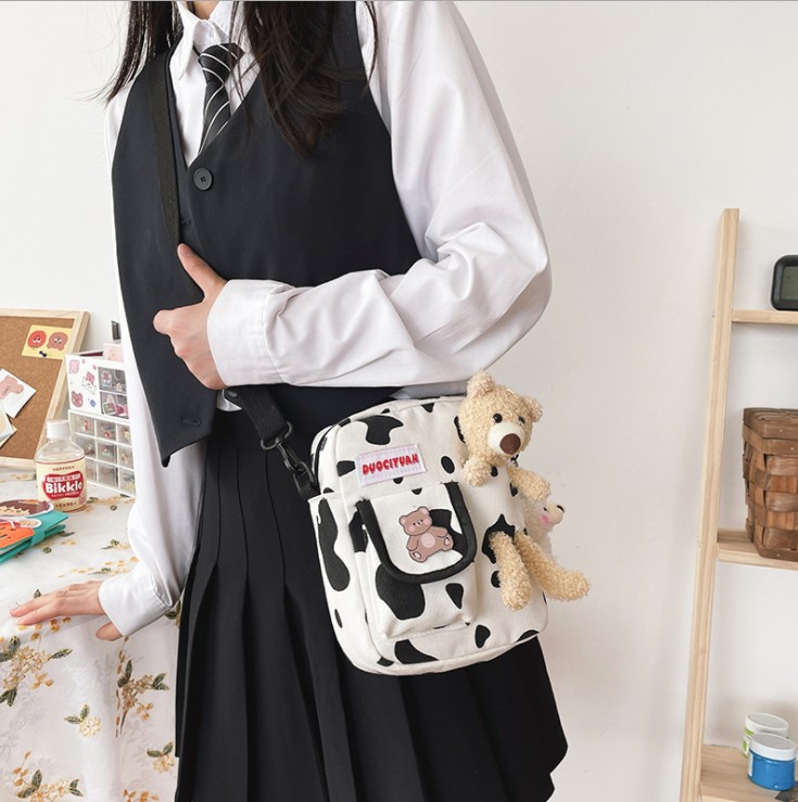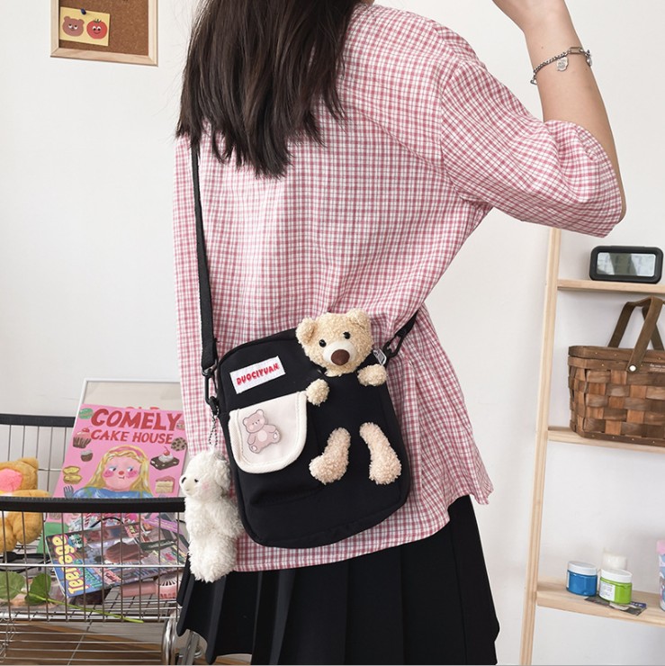 Korean version of ins Harajuku cute funny personality bear doll soft sister student canvas messenger bag Japanese small bag Meng