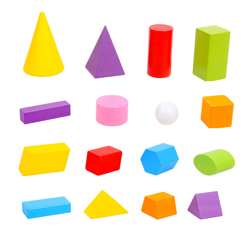 First grade mathematics teaching aids cuboid cube cylinder volume wood elementary school recognizes graphic three-dimensional geometric model