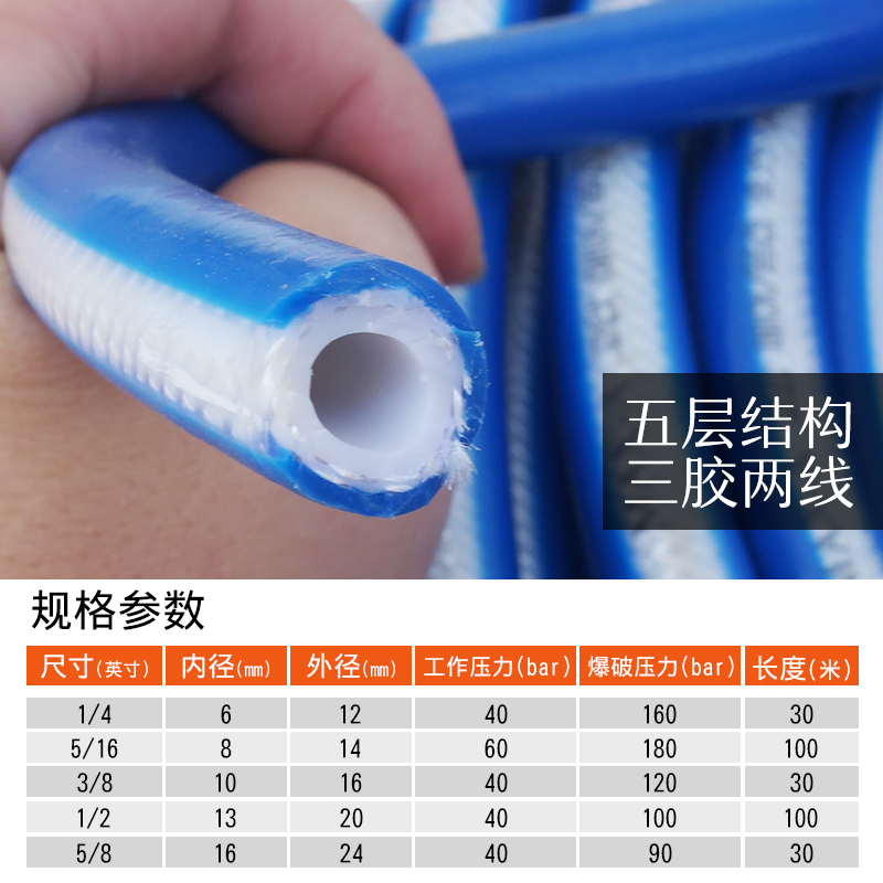 Three - rubber two - line high pressure tube hose 8 10 13 16 mm explosion - proof air compressor air pump air gun paint oxygen pipe