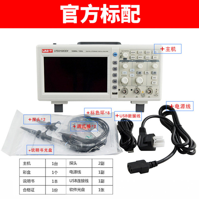 UTD2072CL Dual Channel 70MHZUTD2102CEX Comes standard with UTD2102CEX+ 100M Upgrade UTD2102CEX-II100MHz Dual Channel 100MHz UPO2104CS Quad Channel 100MHz UT81B Comes standard with UTD2102CEX+ standard