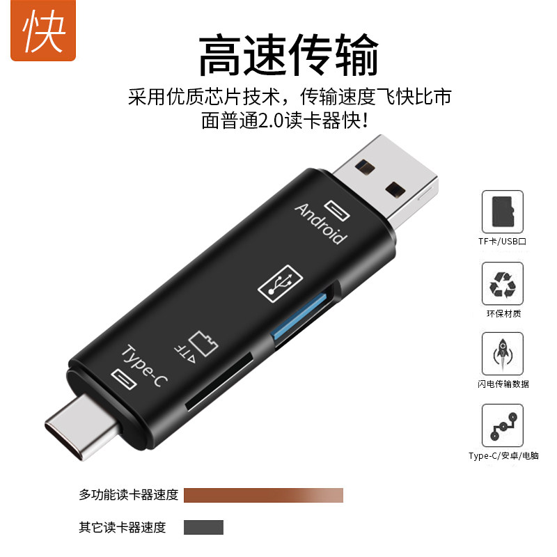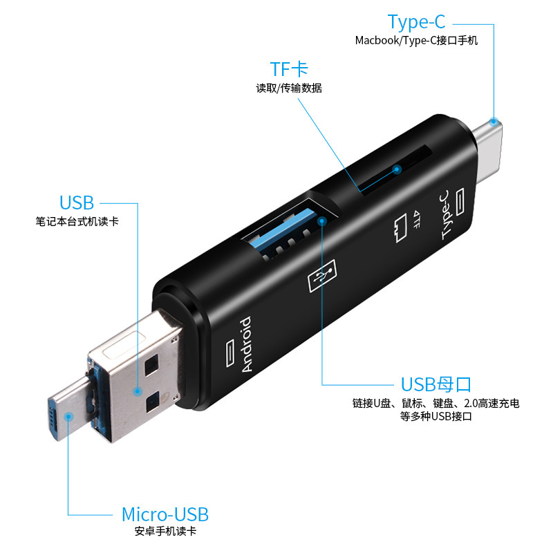 Multi-function card reader all-in-one type-c Android OTG small mini high-speed memory card USB computer car TF card U disk multi-function suitable for Xiaomi 8 Huawei mobile phone computer universal