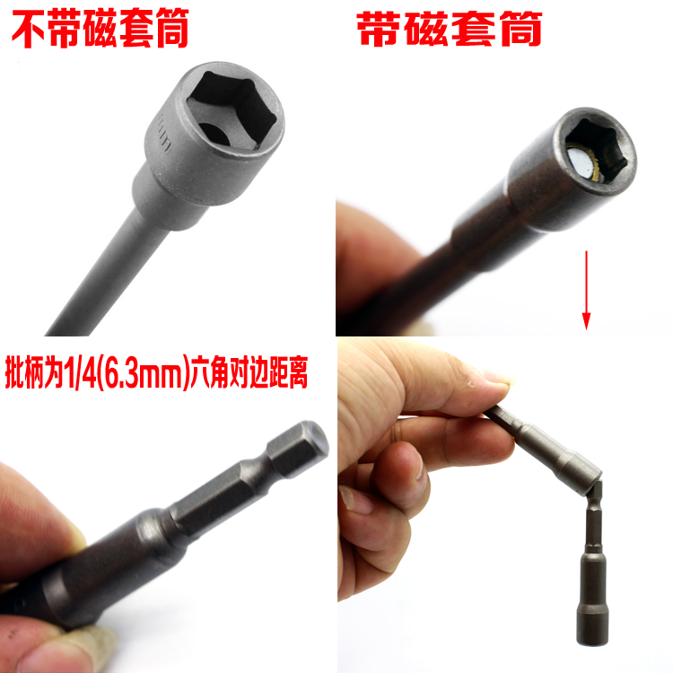 1 4 hexagonal shank pneumatic screwdriver sleeve Industrial lengthened pneumatic sleeve head powerful outer hexagonal screw electric sleeve